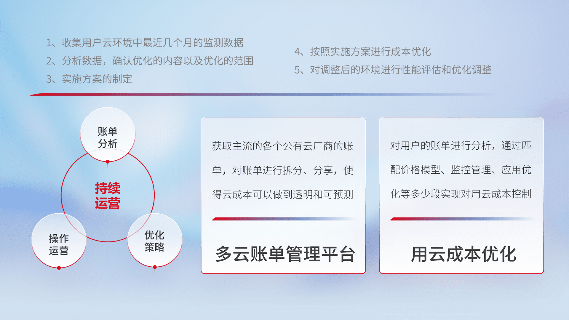运用智能化工具分析云资源,,,提供日常费用可视化工具,,,自动账单拆分,,,,成本优化云上费用,,,降本增效。。。